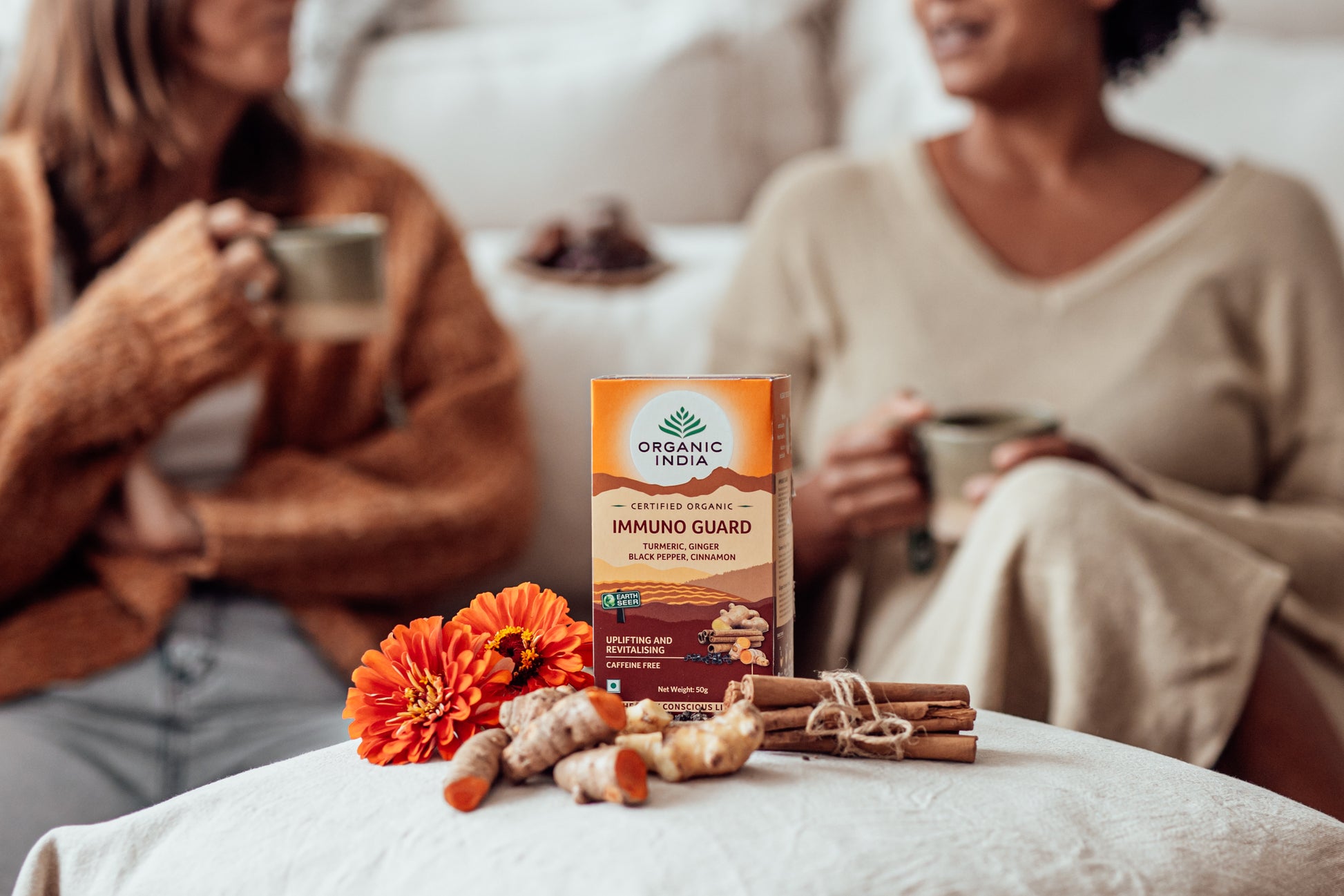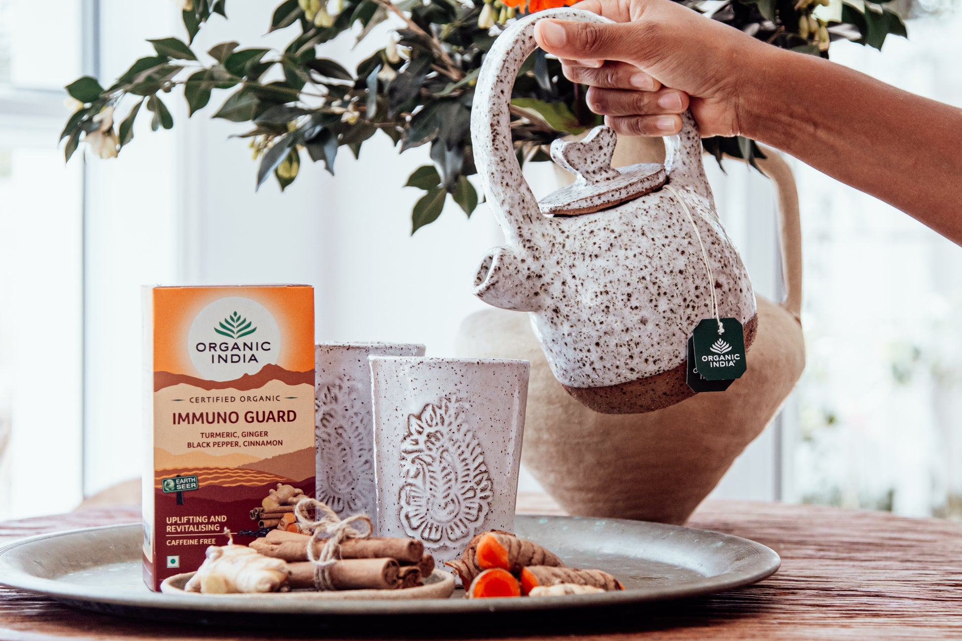 Nourish and empower your body’s innate immunity with ORGANIC INDIA Immuno Guard. This certified organic blend of turmeric, ginger, black pepper, and cinnamon offers a gentle yet potent shield for your body's natural defences making it the perfect choice for your wellness journey.